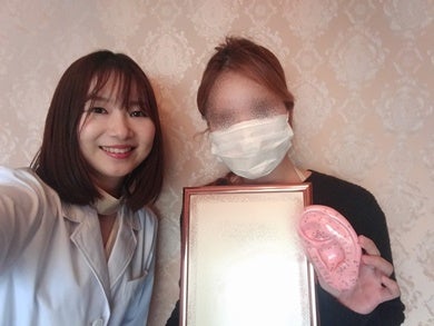 受講後:粒を貼るのに力は全く入れることなく簡単に貼り付けられました。痛みがないことが分かった。