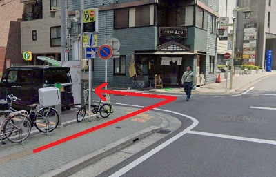 3、左手にファミリーマートが見えてきますので、ファミリーマートを越えて左折します。